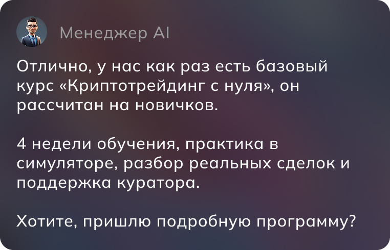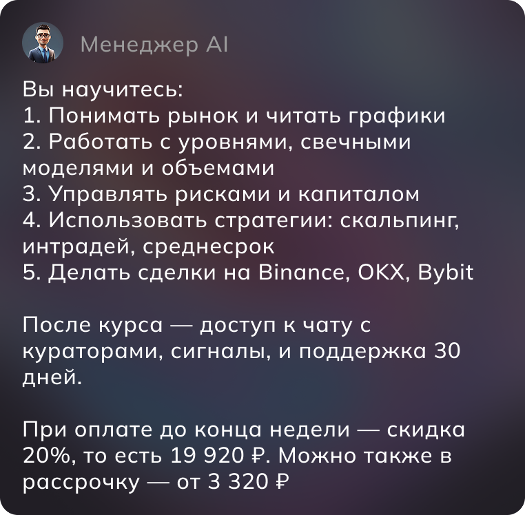 AI отвечает мгновенно, не теряет лидов и эффективно обрабатывает возражения